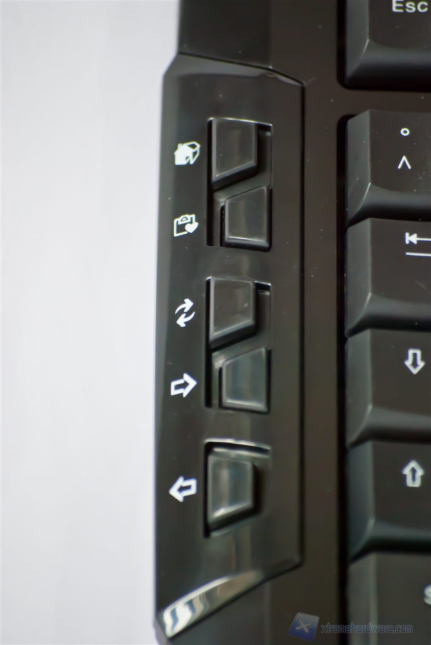 Sulla parte sinistra della tastiera possiamo trovare cinque tasti utili nella navigazione internet; troviamo, infatti, il tasto “home”, che ci apre automaticamente la nostra homepage impostata, il tasto per l'apertura dei preferiti o delle dock di browser (ad esempio su Opera apre la dock di sinistra), il tasto di “refresh” e le due frecce per la navigazione verso la pagina precedente e quella successiva.