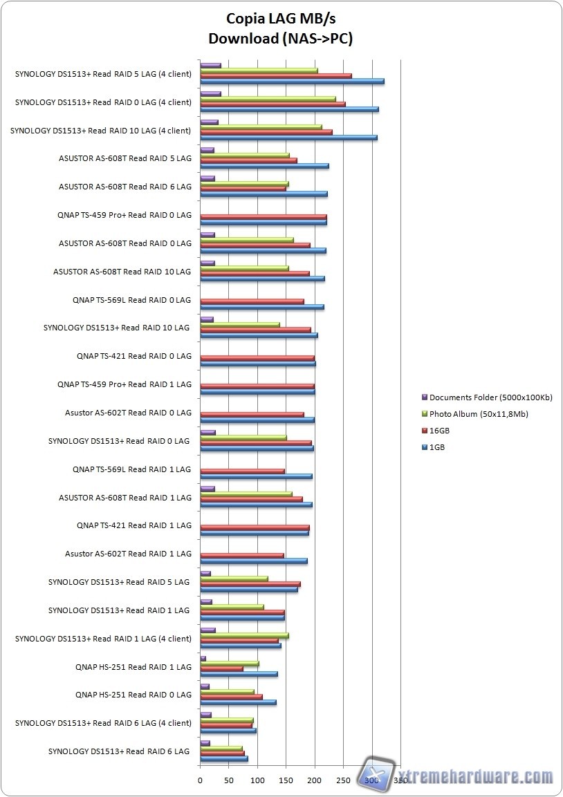 Analizziamo ora le performance del QNAP HS-251 in configurazione Link Aggregation.