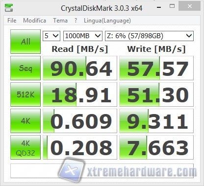 Iniziamo l’analisi delle prestazioni di questo NAS partendo da quello che è uno dei software di riferimento per il test dei dischi fissi, ovvero CrystalDisk Mark nella versione 3.0.3 x64.